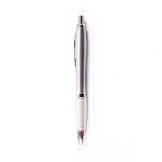 Descripción: Lápiz plástico metalizado con clip metálico, aplicaciones silver en punta, cintura, pulsador giratorio y goma antideslizante en empuñadura. Tinta azul.