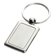 Llavero Metálico Cuadrado. Presentación en estuche laminado negro con cuna aterciopelada.