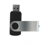 Pendrive, PVC goma, tapa metálica giratoria, empaque plástico individual. Capacidad 16 Gb.