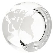Trofeo de Cristal modelo “Planet” en forma de planeta con lado truncado. Presentación en caja de cartón forrado negro.